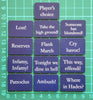 This set of 13 stratagem tokens, printed with text on one side and plain green on the other, for use with To The Strongest! If you should lose a chit (it happens!), please message me and I can include a replacement in...Stratagem Tokens - TtS! - Purple